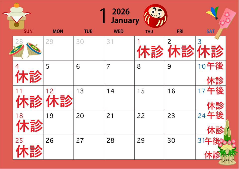 年末年始は12/30〜1/4まで休診とさせていただきます🎌